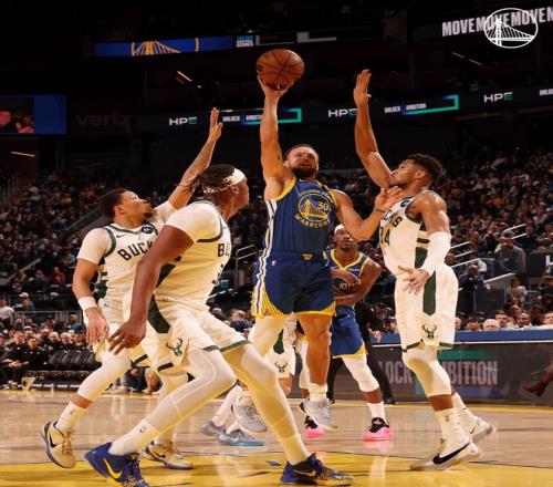 末节库里抛投继续命中,但雄鹿将分差缩小到10分,库里连续两次出手不中雄鹿将分差缩小到7分,最关键的时刻库里命中一个三分球,这个三分球直接将比赛拿下,但场边的裁判示意是一个两分球,但这一球命中勇士还是锁定胜局了。