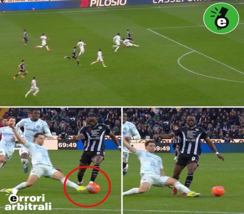 比赛第70分钟左右,随着乌鸡连续换上进攻球员加强攻势,国米球员体能不足的问题逐渐暴露出来,这时候裁判还来加戏!在乌迪内斯的一次快速反击中,拖在防线最后的奥古斯托完成精准铲断,慢镜头可以清晰看到奥古斯托是先碰到了球,可裁判却吹罚铲球犯规,给了奥古斯托一张黄牌!要知道,如果奥古斯托真的犯规,作为防线最后一名防守球员,阻挡了对方单刀球的机会,这应该直接给红牌才对,可裁判却给出了黄牌+定位球,明显不合理!