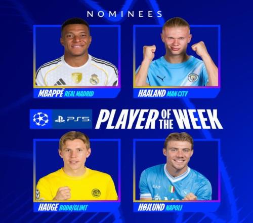 欧冠联赛阶段第二轮所有比赛战罢,欧冠官方公布了本周最佳球员候选,分别是姆巴佩、哈兰德、海于格、霍伊伦。欧冠本周最佳球员候选姆巴佩 上演帽子戏法助皇马客场5-0大胜阿拉木