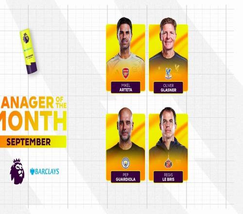 英超九月最佳教练候选:瓜迪奥拉、阿尔特塔、格拉斯纳入围